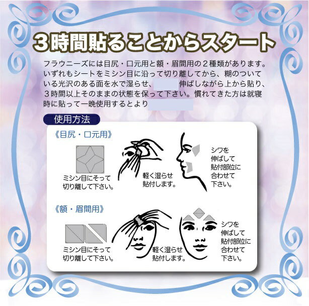 パッケージが変更になりました 2019/7/19 商品名 フラウニーズ (額・眉間用/目尻・口元用) 6折り144ピース 美容 トレーニングテープ シワ シワトレテープ 商品詳細 ※シワのトレーニングテープ(シワトレテープ)。