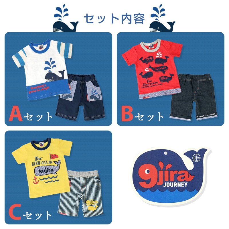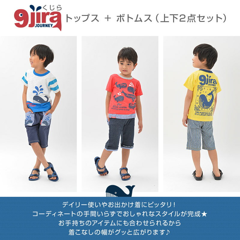 【メール便送料無料】くじら 夏コード 上下 2点セット(80-130cm)▽【9jira】セットアップ 子供服 キッズ ベビー ▽