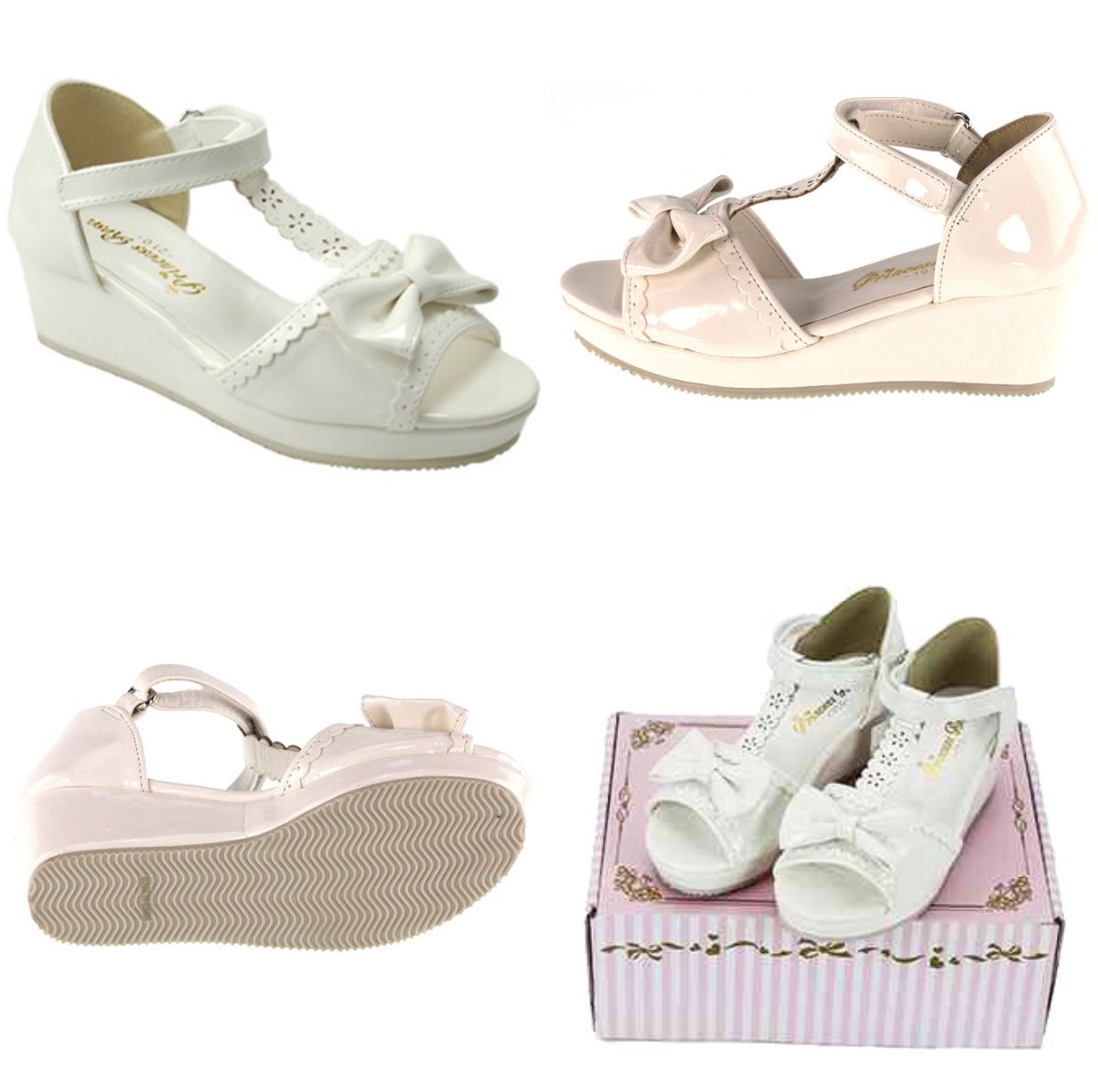 エナメル調素材のウェッジソールサンダルです インパクトのある結びリボンが女の子らしさをプラス マジックテープだから、靴の脱ぎ履きやサイズ微調整が簡単です かわいい化粧箱がついているのでプレゼントにも最適 サイズ:19.0cm/20.0cm/21.0cm/22.0cm/23.0cm カラー: ブラック / ホワイト 表地:合成皮革 ソール:合成底 生産国:中国 [プリンセス ローズ] Princess Rose ウエッジソール リボン サンダル [プリンセス ローズ] Princess RoseKIDS sandals リボン ウェッジソールサンダルエナメル調の素材で作られ 大きなリボンがとてもかわいい アンクルストラップ ベルクロ(マジックテープ)を使用して調整可 かわいい化粧箱だからプレゼントにも最適。