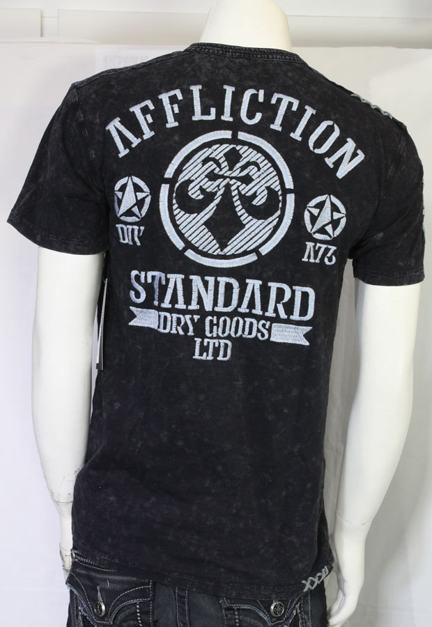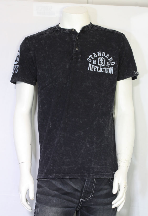 新作 LAセレブ着用 雑誌掲載【AFFLICTION/アフリクション】DIV STAMPヘンリーネックTシャツ(ブラック・BLK)/メンズ【インポート】【セレカジ】【正規品】